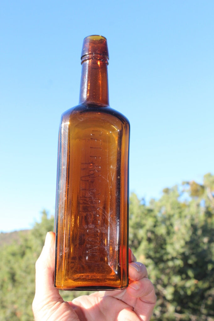 MEDICINE BOTTLE   PAINE'S CELERY COMPOUND  - Near Mint Condition!  ~ 9 1/2 inches tall