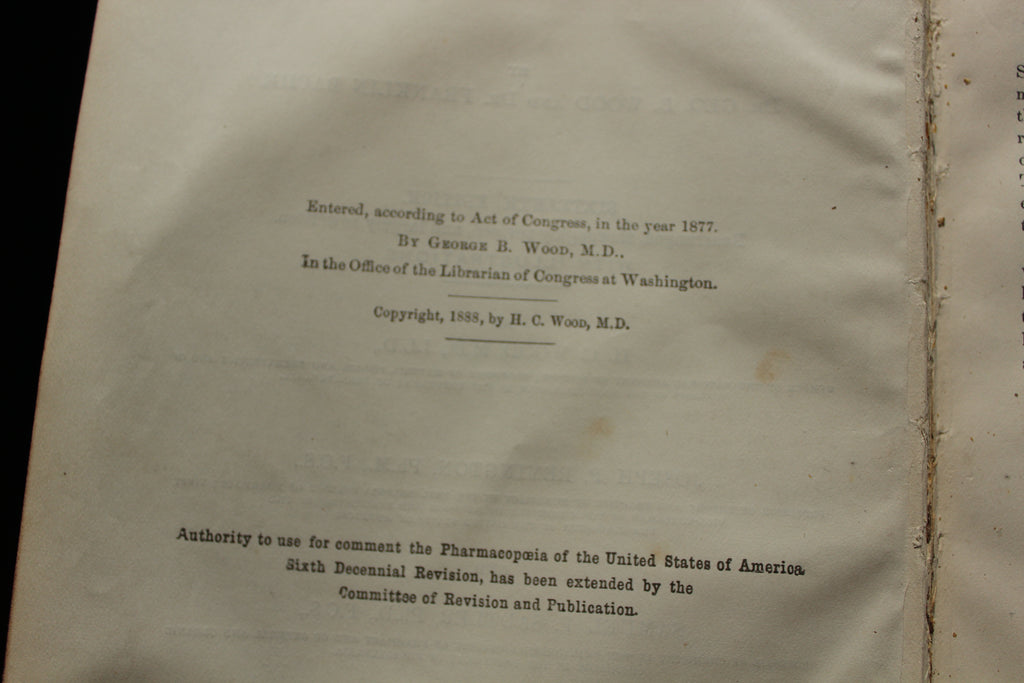 1890 THE DISPENSATORY Of The United States - 16th Edition - Wood & Bache - Hardcover VOLUME 1