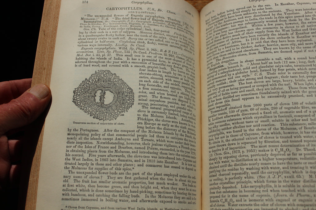 1890 THE DISPENSATORY Of The United States - 16th Edition - Wood & Bache - Hardcover VOLUME 1, 1052 pages, volume ends at Oleum Gossypii Seminis , Good Condition.