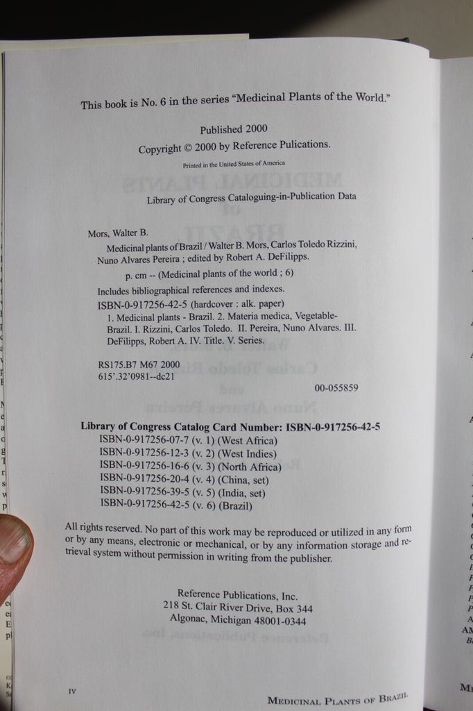 Book Medicine Ethnobotany MEDICINAL PLANTS OF BRASIL By More,Rizzini, Pereira - - Very Good Scarce and Out of Print
