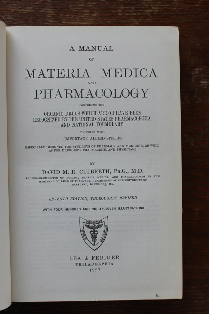 Materia Medica and Pharmacology 1927 Culbreth Hardcover - EXCELLENT REFERENCE