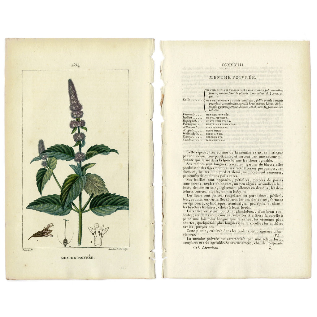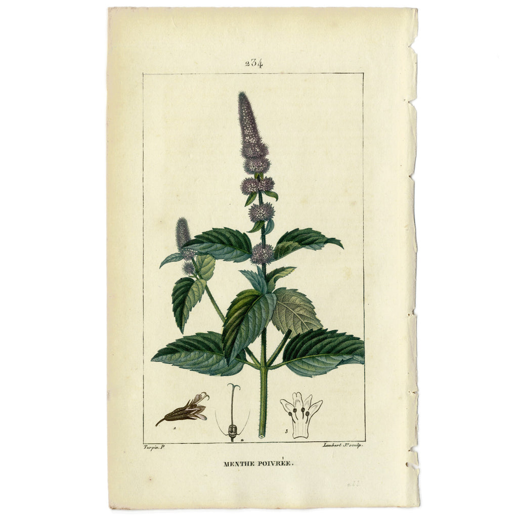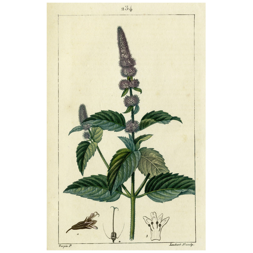 Rare 1814 Turpin Hand-Colored Print FLORE MÉDICALE, MENTHE, PEPPERMINT (Poivrée) - Over 200 Years Old!