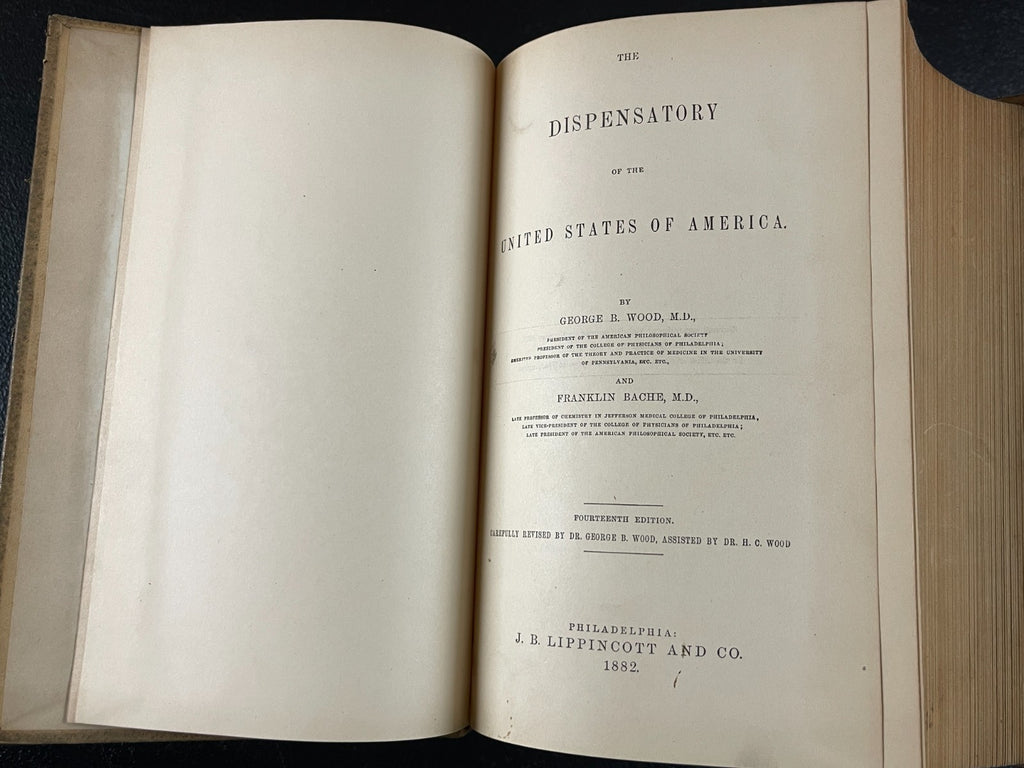 The Dispensatory of the United States of America; George B. Wood and Franklin Bache; J. B. Lippincott, Philadelphia; 1882; 14th edition; 1879 pages. BEAUTIFUL COPY!