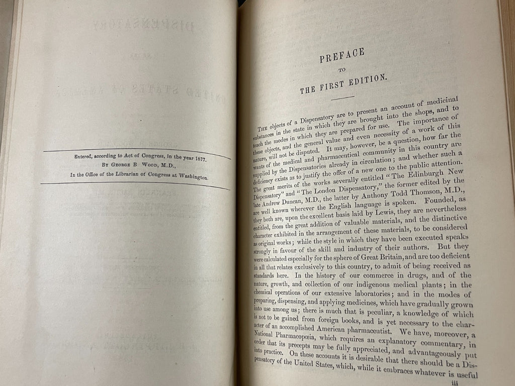The Dispensatory of the United States of America; George B. Wood and Franklin Bache; J. B. Lippincott, Philadelphia; 1882; 14th edition; 1879 pages.